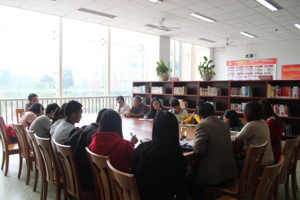 10月20日中午,计科学院在图书馆二楼党建专区组织2014年下半年发展对象培训会,培训会由学校党建组织员、原党群机关总支书记罗松乔老师主讲,出席本次培训会议的有计科学院党总支书记周明培、副书记罗谊恒、学生科科长谭红梅、辅导员魏玮以及10名发展对象。