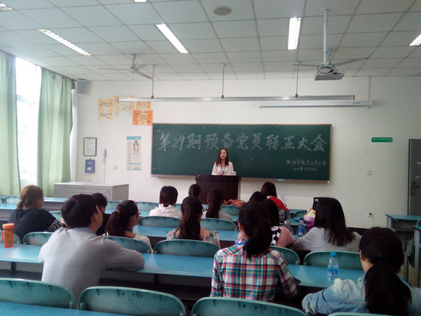 5月22日下午,政治学院第二十九期预备党员转正大会在行知楼107举行。11思政党支部书记袁晓玲主持转正大会,会议主要讨论了王晓先、向华俐、罗柏萍、刘星、左体芬、何榆琳等六名预备党员的转正问题。11思政党支部全体成员到会。