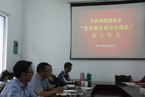 9月18日下午,生科学院在学院会议室召开全体教师党员会议,宣布成立“党员服务地方先锋队”,会议由党总支书记曹成全主持。