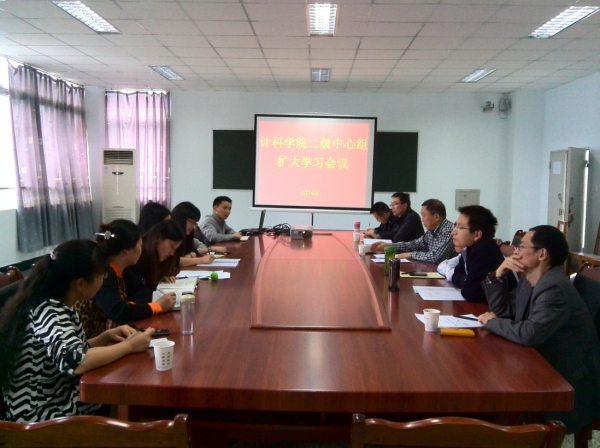 5月8日下午,计科学院党总支在弘毅楼601学术报告室组织了二级中心组(扩大)学习会,学院全体党政领导、党总支委员、党支部书记、学生科长、分工会主席参加了此次学习,此次学习由党总支书记周明培主持。
