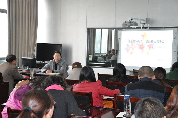 11月28日下午,在实验实训大楼A区602教室,教科学院全体教职工聆听了党总支书记佘万斌作的“增强四种观念提升核心竞争力”专题学习报告,认真学习领会党的十八届三中全会精神。