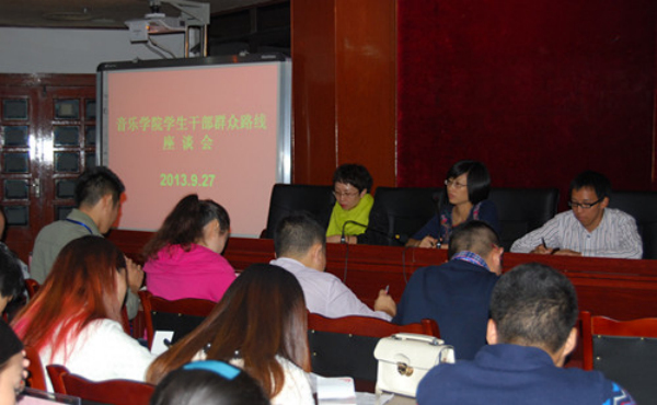 9月27日晚,音乐学院组织全体学生干部在学院会议室召开党的群众路线座谈会。党总支副书记赵迎春、学生科长张巧和辅导员罗智勇、杨锐等老师参加了会议。