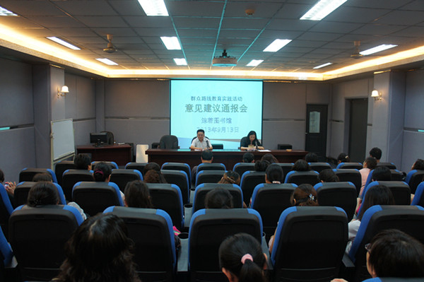 近日,图书馆在负一楼会议室召开了党的群众路线教育实践活动意见建议情况通报会,党政领导班子和职工参加了通报会,会议由直属党支部书记杨虹主持。