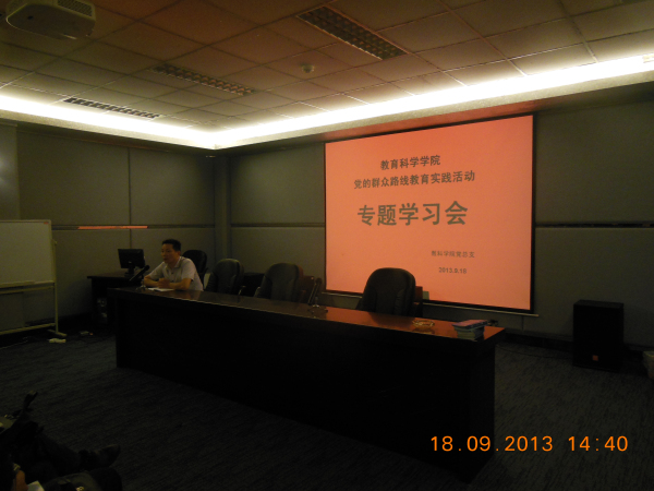 9月18日下午,教科学院党总支在图书馆多媒体会议室召开了党的群众路线教育实践活动专题学习会,教科学院党总支委员、科级干部、教工党支部书记、辅导员、学生党建中心成员、学生党支部书记共40多人参加了学习会。学习会由党总支书记佘万斌主持。