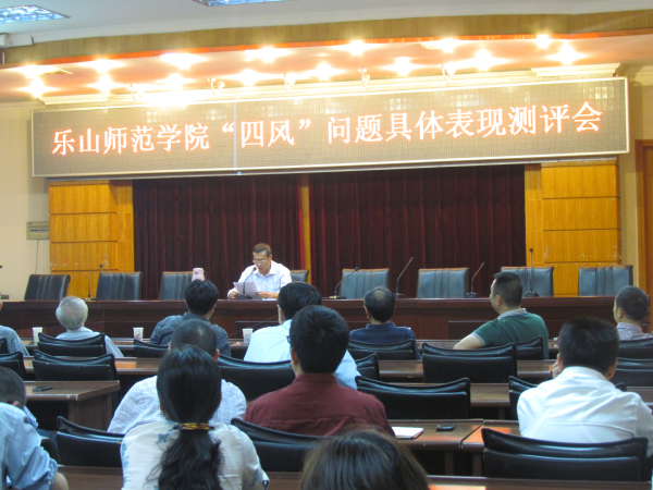 会上,参会人员每人填写了一份“乐山师范学院‘四风’问题具体表现材料评价表”,对我校“四风”问题表现材料的认可度进行了测评。